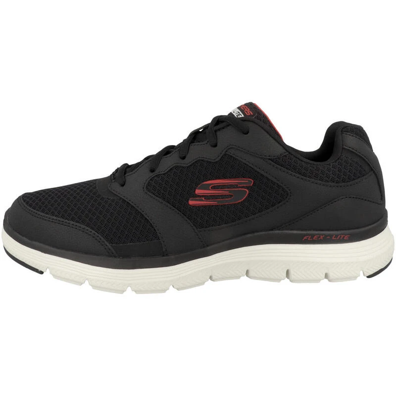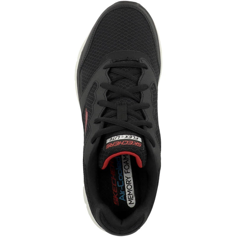 Schoenen Flex Advantage 4.0 – 232225-BKRD Zwart: Train in flexibel comfort met de Skechers Flex Advantage 4.0 schoen. Deze sportieve vetersneaker is uitgevoerd in leer en mesh met een dempende Air