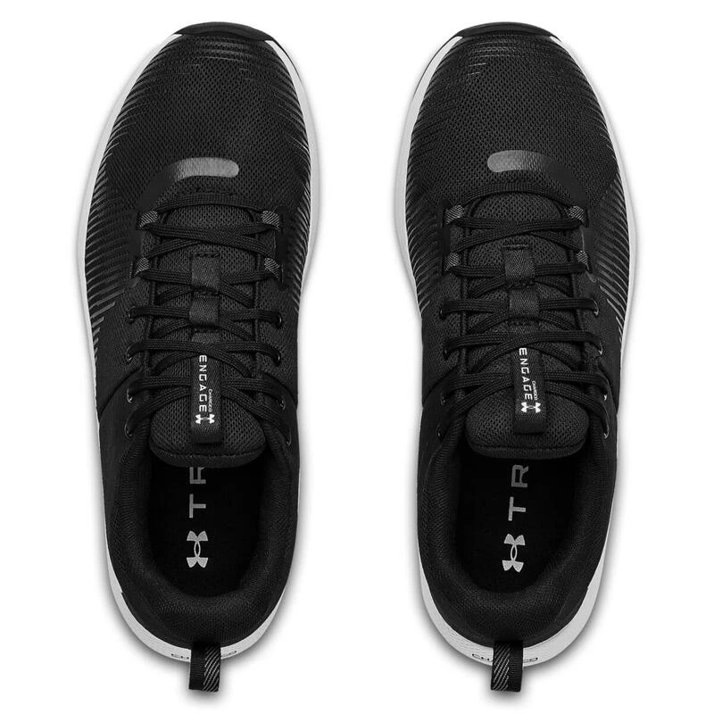UA Charged Engage Men’s Training Shoes Licht en ademend vampje met riemen aan de voorkant om de voet in alle bewegingen te immobiliseren3D-zeefdruk op de vamp voor meer stevigheid en beschermingBinnenste hielversterking en dunne lagen TPU van middenvoet tot hiel voor steun en stabiliteitCharged Cushioning® tussenzool met compressiegegoten schuim voor absolute responsiviteit en duurzaamheidRubber buitenzool over de volle lengte voor maximale sterkte met een inkepingspatroon dat in alle richtingen blijft hangenHiel-tot-teen differentieel: 8 mmGewicht: 255 g Geïmporteerde